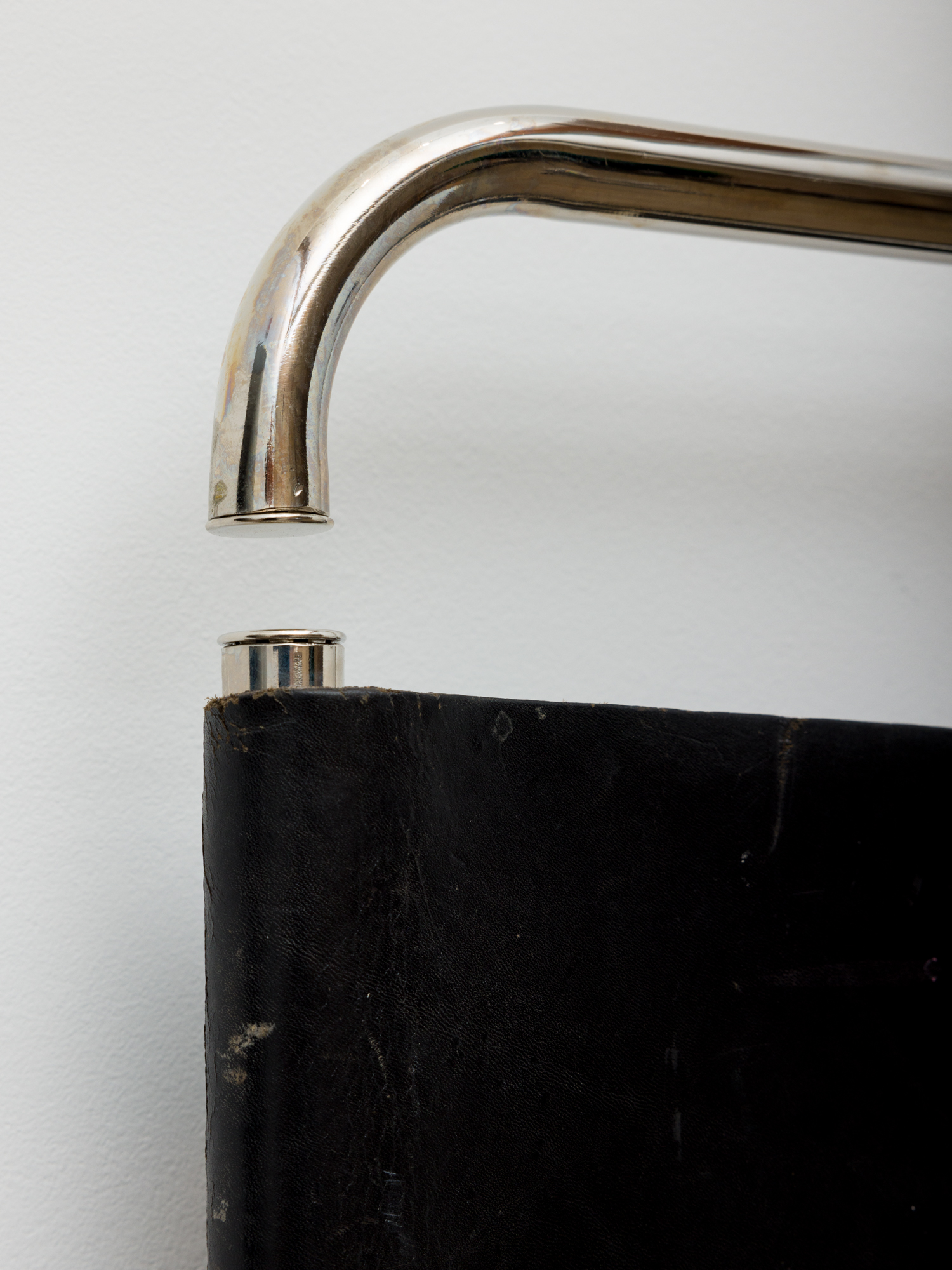 leather from a Mies/Reich chair, brass ashtray, and nickel-plated steel tubing