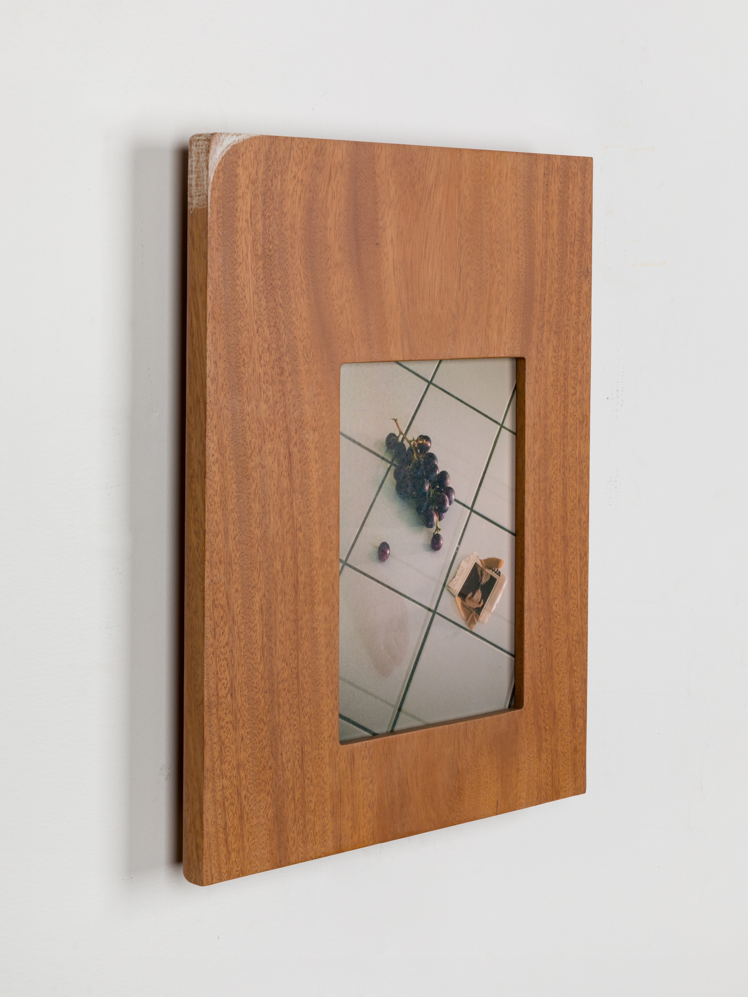 archival inkjet print, glass, color pencil on African Mahogany, and powdercoated steel