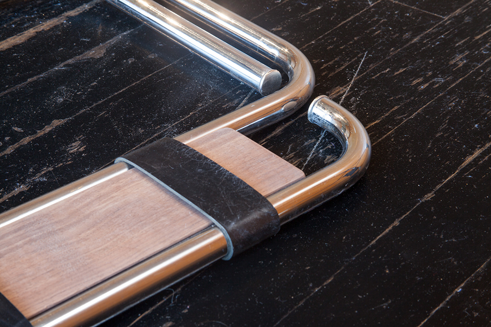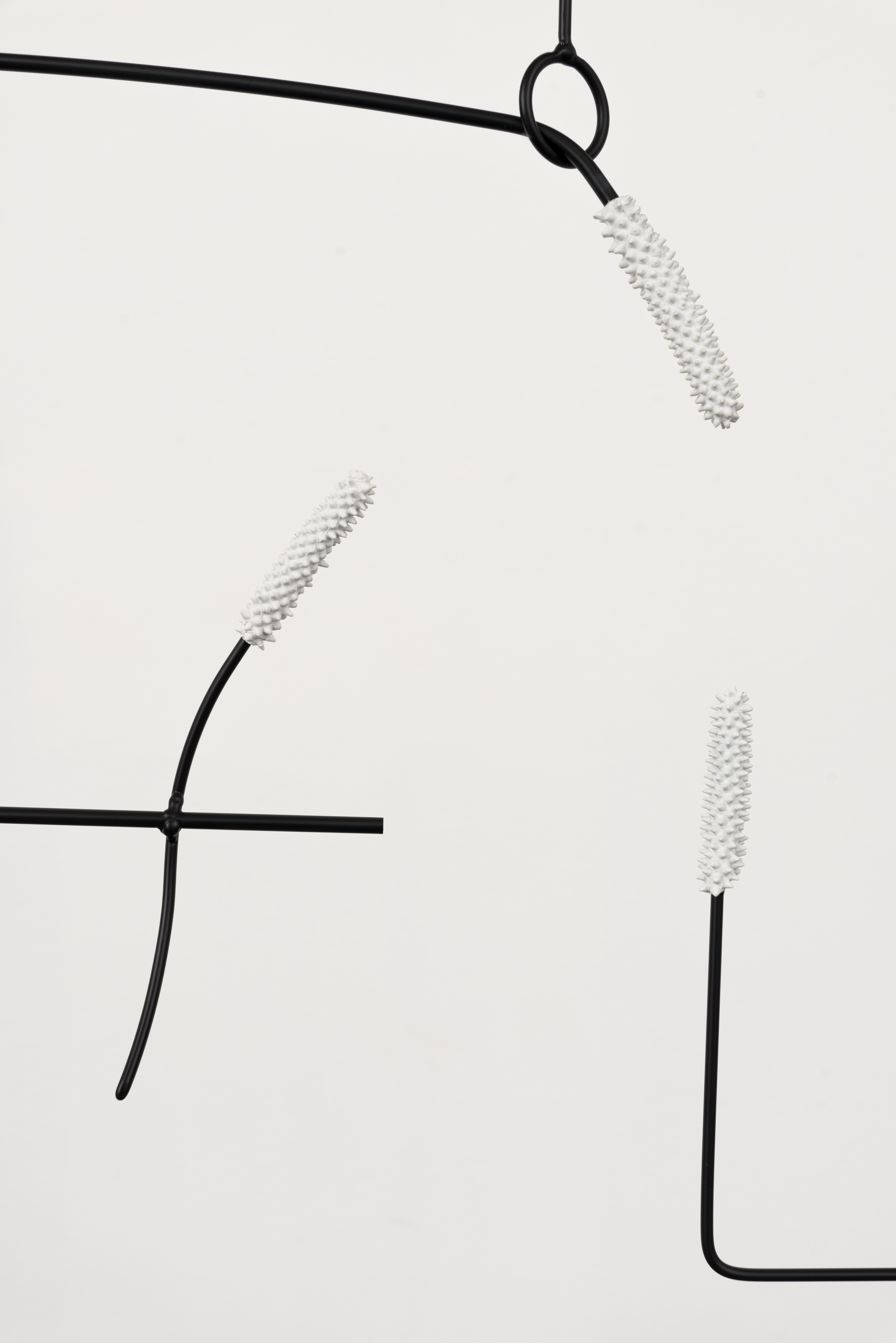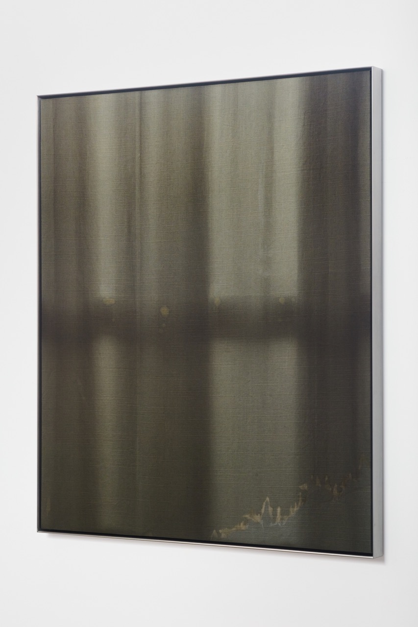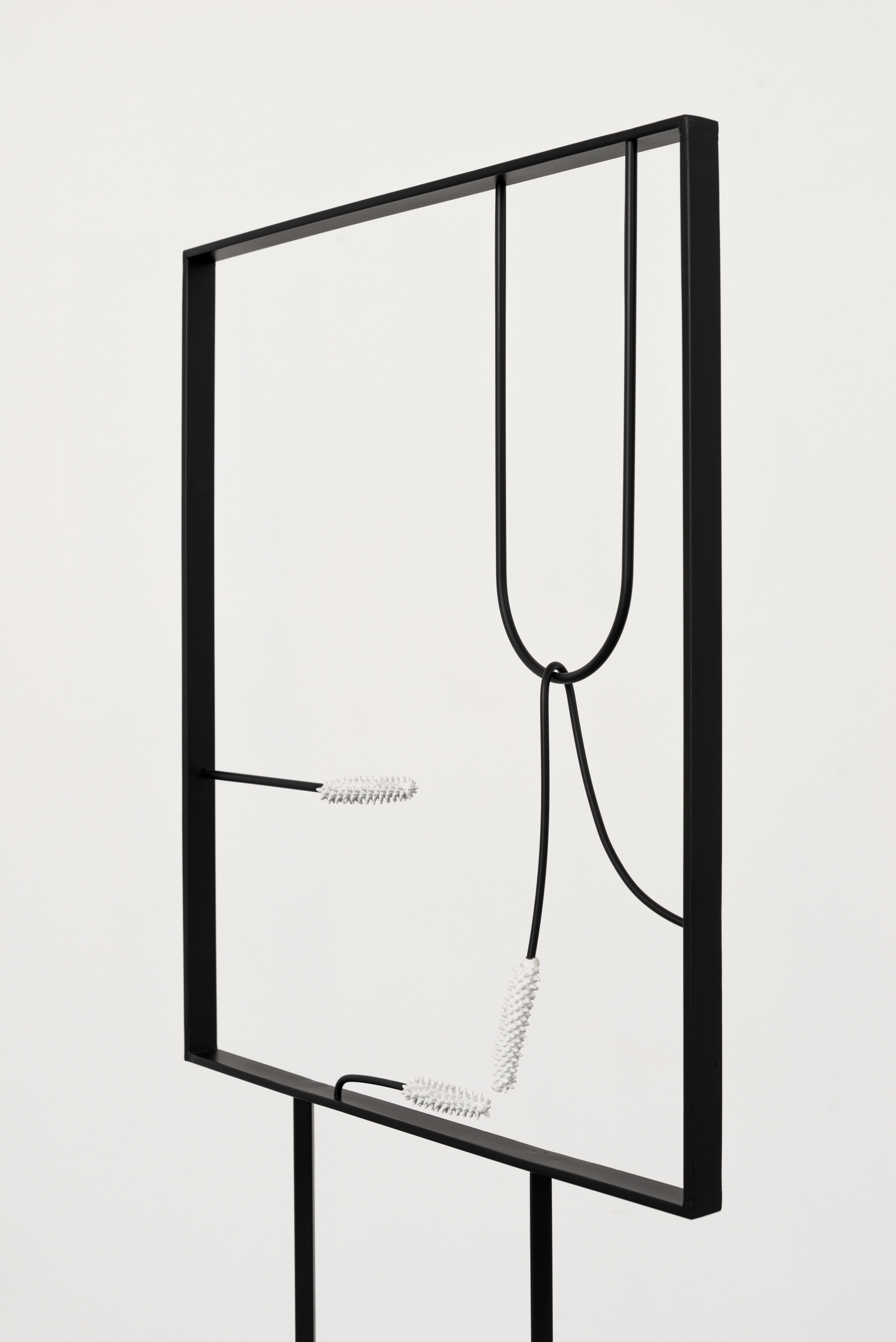 cotton hand towel, cast bronze lily bud, steel, and steel i-beam