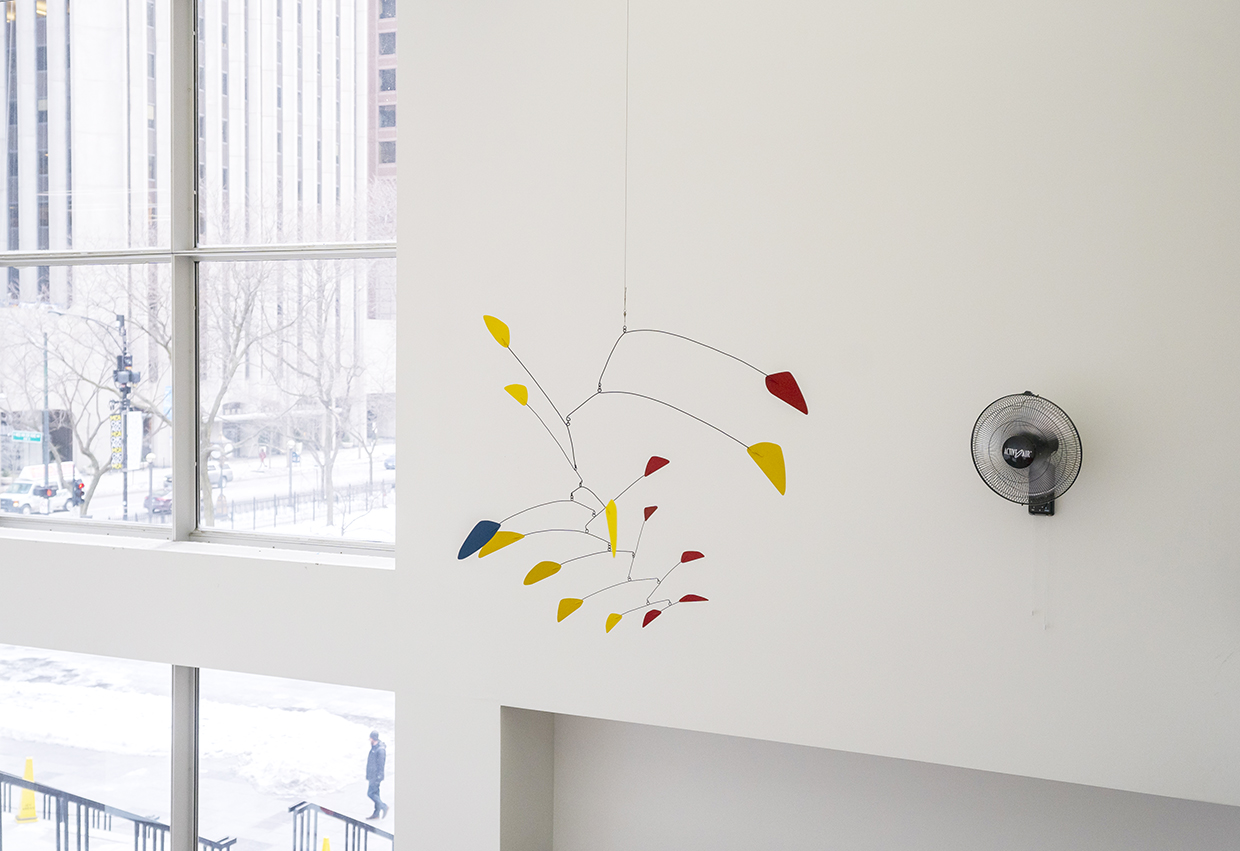 faux Alexander Calder mobile (sheet metal, paint, steel, wire) and breeze from an industrial fan